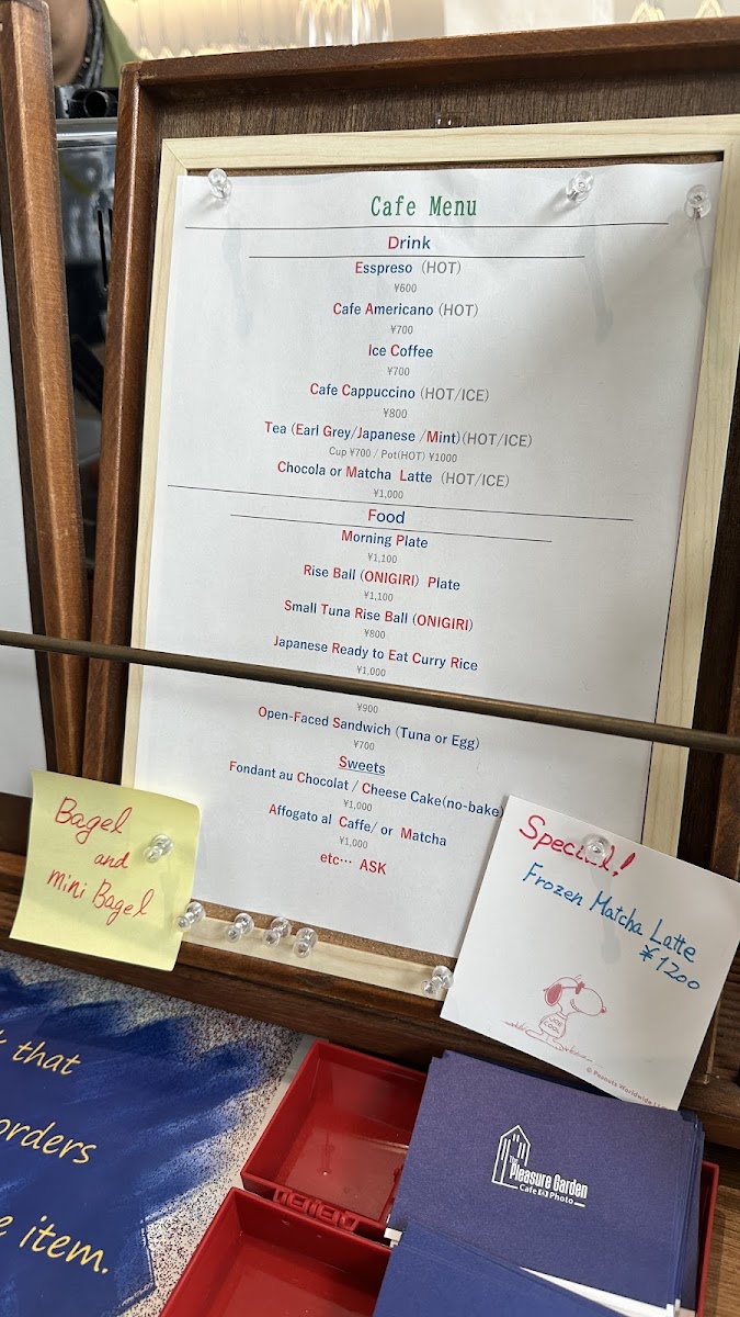 The menu at The Pleasure Garden Cafe & Photo features a variety of options suitable for coffee breaks, light meals, and casual dining. Visitors can expect offerings in categories such as coffee, tea including matcha, soft drinks like lemonade, and a selection of light food items and snacks. The menu supports quick orders as well as relaxed visits, accommodating different dining preferences throughout the day.